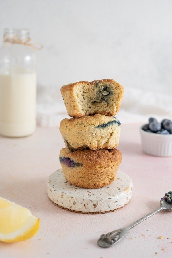 Ingredientes: Huevos, Eritritol, Harina de almendras, Arándanos, Aceite de coco, Harina de coco, Stevia, Polvo para hornear, Goma xántica, Bicarbonato de sodio, Sal del Himalaya, Esencia de vainilla, Jugo y ralladura de limón